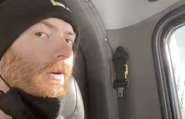 10. päivä marraskuuta kuvatulla videolla kanadalainen Michael Becker hengittää ulos ilman maskia ja kylmän sään ansiosta höyry näkyy erinomaisen hyvin.