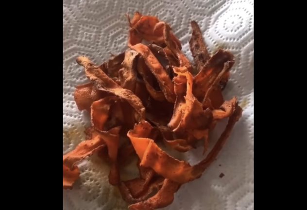 Tässä suositun TikTok-videon kuvanneen naisen kommentti friteeratuista porkkanasiivuista: