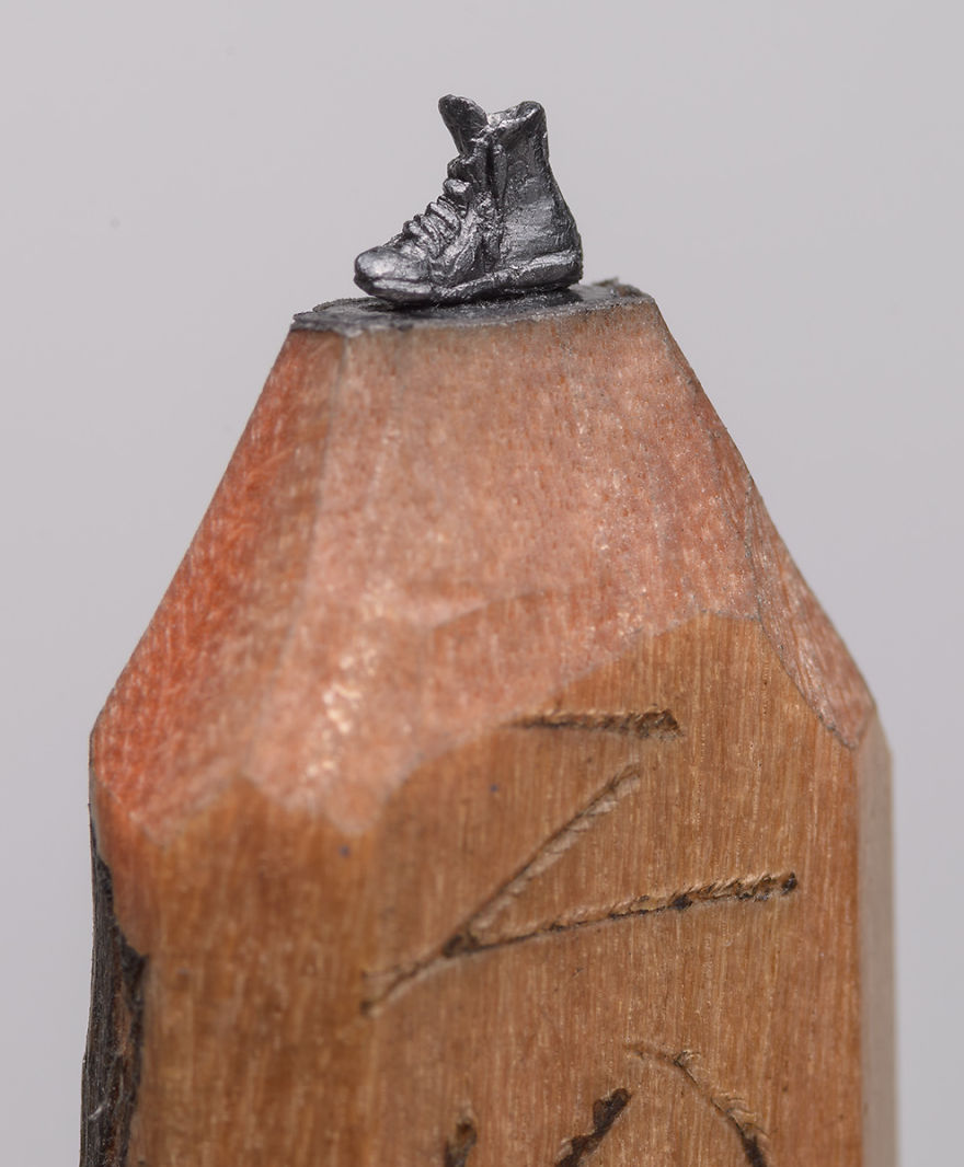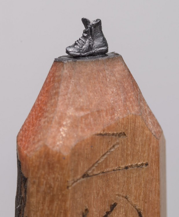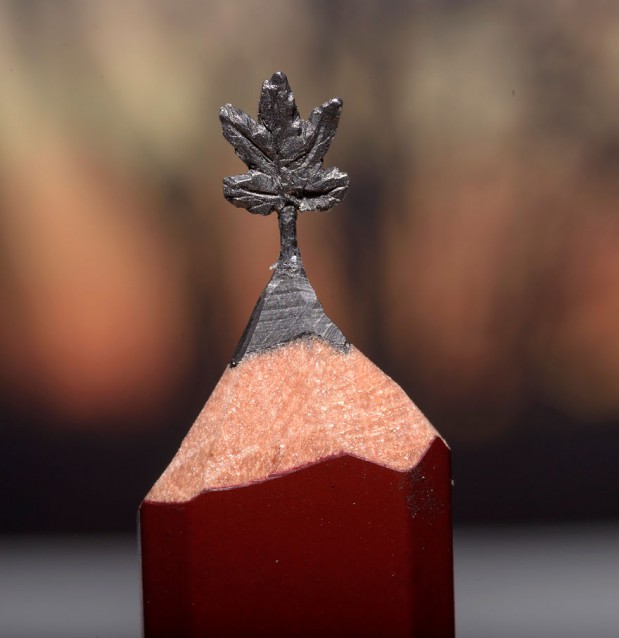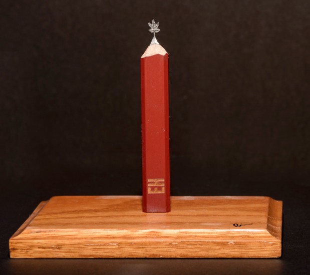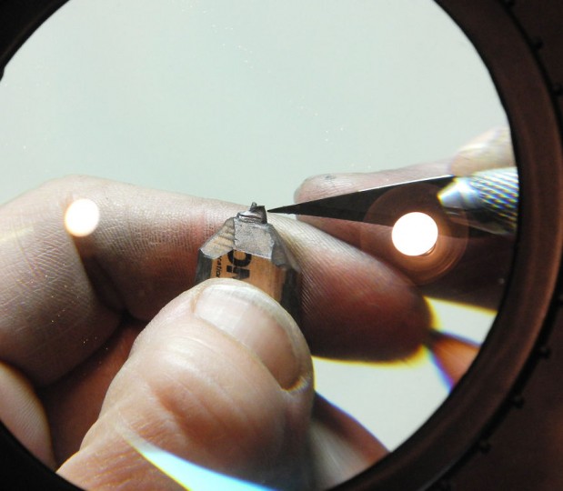 Nainen kaivertaa lyijykyniin uskomattoman tarkkoja yksityiskohtia
