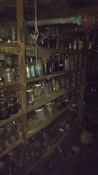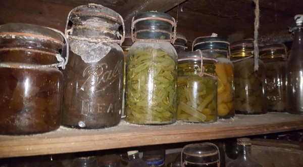 Nainen vihdoin uskaltautui kellariin. Hän löysi sieltä valtavasti lasipurkkeja.