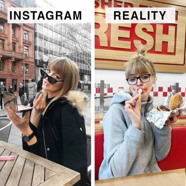 Kuvien tarkoituksena on ilmeisesti näpäyttää tuhansia ”some-vaikuttajia”, jotka elävät näennäisesti täydellistä elämää. Loppujen lopuksi on kuitenkin hyvä muistaa, että me kaikki olemme ihmisiä ja teemme virheitä, joita ei kannata ottaa liian vakavasti.