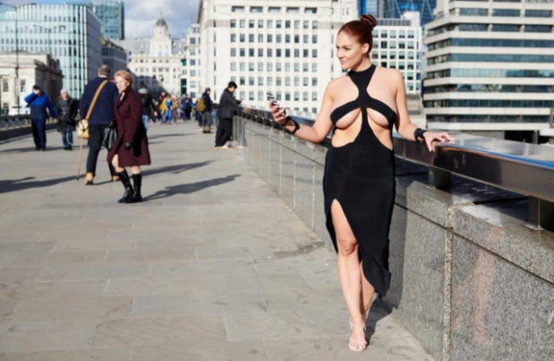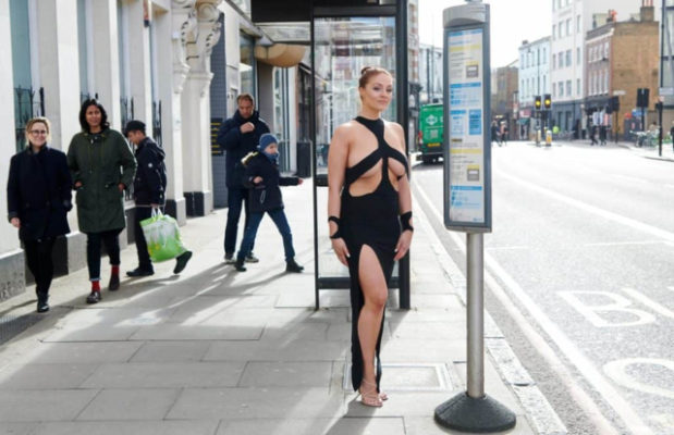 Mutta miltä näyttäisi jos gaala-asuihin pukeutuisi siviilissä, ”tavallisten” ihmisten keskuudessa. Stephanie Barnes päätti selvittää tämän pukeutumalla Kim Kardashianin paljastavaan asuun. Stephanie Barnes on ammatiltaan malli ja paljastavissa asuissa esiintyminen ei ole ollut hänelle ongelma. Voin vain kuvitella, mitä ympärillä olevat ihmiset ajattelivat nähdessään Stephanien. Ruokakaupassa, kahvilla ja oluella käynyt malli käänsi kaikkien katseet tehokkaasti itseensä. Samalla täytyy sanoa että onhan kyseinen asu aika naurattavan ja epäkäytännöllisen näköinen!