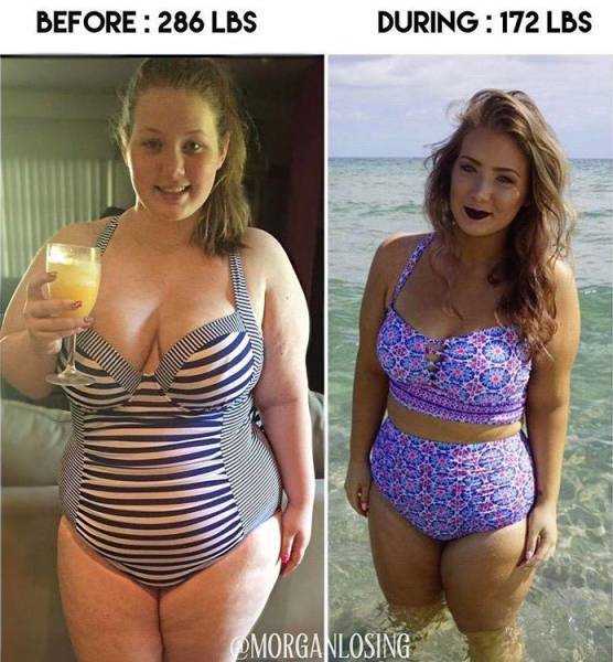 Morgan Bartley joutui monimutkaisiin leikkauksiin, kun hän oli 12 ja 14-vuotias. Samalla lääkärit kertoivat, että Morgan ei tulisi koskaan saamaan lapsia. Kyseisestä päivästä lähtien Morganille kehittyi syömishäiriö, joka nosti hänen painoa 136 kilogrammaan. Tyttö oli vasta 17-vuotias ja sairaalloisen ylipainoinen — eräänä päivänä hän päätti kuitenkin tehdä elämässään muutoksen. Morgan loi Instagram-tunnuksen, johon hän alkoi dokumentoida painonpudotuksessa tapahtuvaa edistymistä. Nainen painaa tällä hetkellä 79 kiloa ja on lähellä unelmapainoaan, joka on 65 kiloa.1.