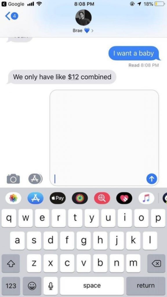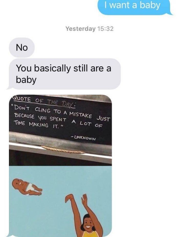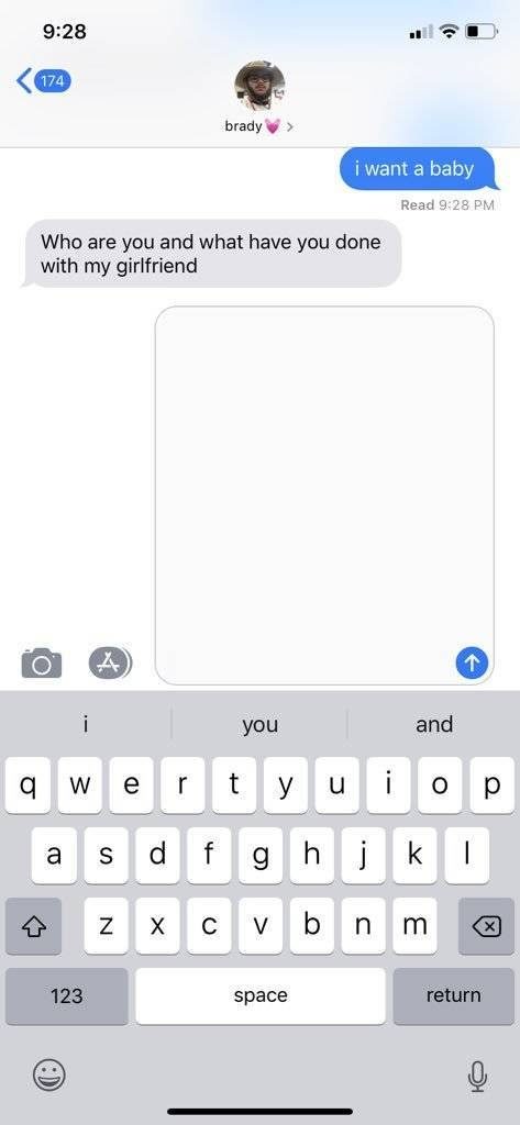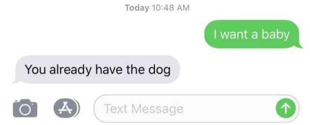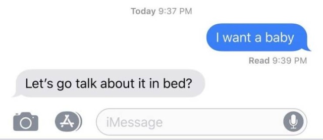 Tällä hetkellä Twitterissä leviää huvittava keskustelu: ”Tekstaa poikaystävällesi ’minä haluan vauvan’ ja ota kuvakaappaus vastauksesta”
