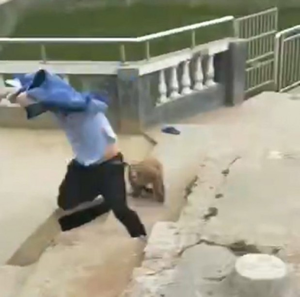 Xitianin temppelissä vieraillut turisti sai maistaa omaa lääkettään, kun hän meni häiritsemään päiväänsä rauhallisesti viettänyttä apinaa.