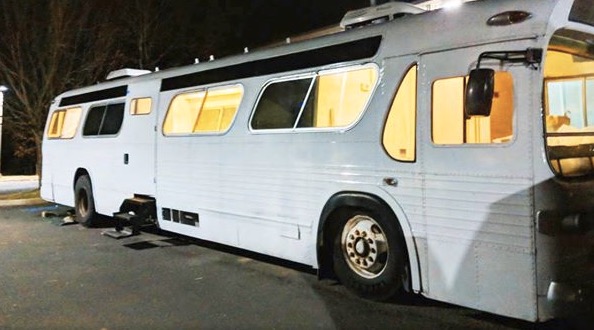 Hän myi bussin vanhat penkit ravintolaan ja päätti maalata bussin sisäpuolen valkoiseksi.