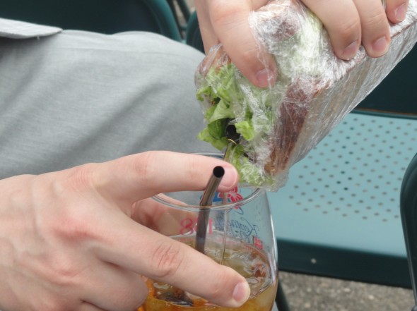1. Pitkän letkun ansiosta voi huomaamattomasti siemailla tästä mahapussista omaa juomaa, eikä kukaan epäile mitään.