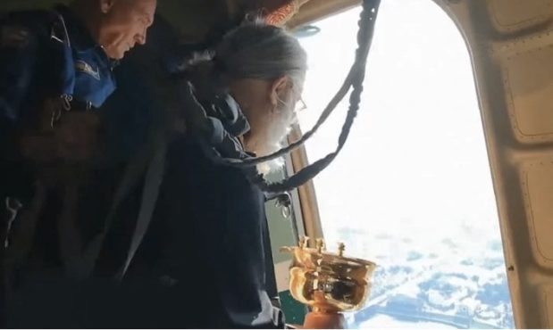 Ortodoksipappi Alexander Goryachev ja kaksi muuta ortodoksikirkon jäsentä nousivat yläilmoihin tehtävään puhdistaa syntisiä kansalaisia. He hankkivat 70 litraa pyhää vettä ja kaksi ikonia, joiden tehtävänä oli vapauttaa ihmiset alkoholi- ja huumeriippuvuudesta sekä esiaviollisesta seksistä.