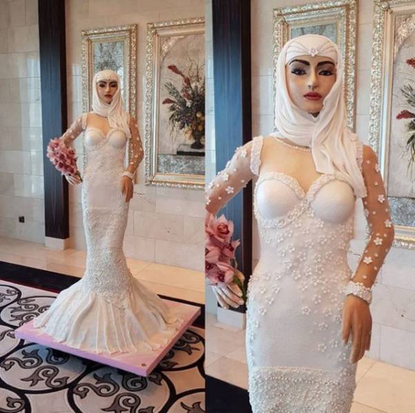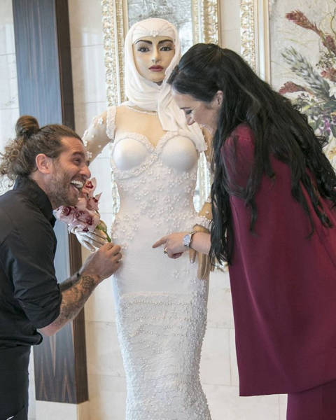 #8 Tältä 1 miljoonan dollarin ”morsian” näyttää. Hänen pituutensa on 182 cm ja paino 120 kilogrammaa. (oikea morsian ei toivottavasti ollut näin painava.)