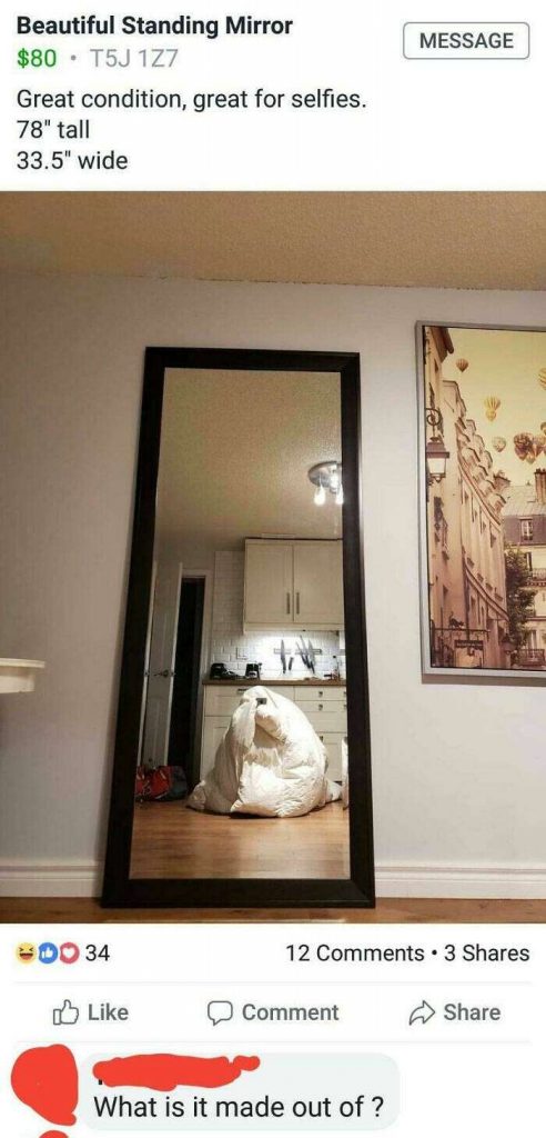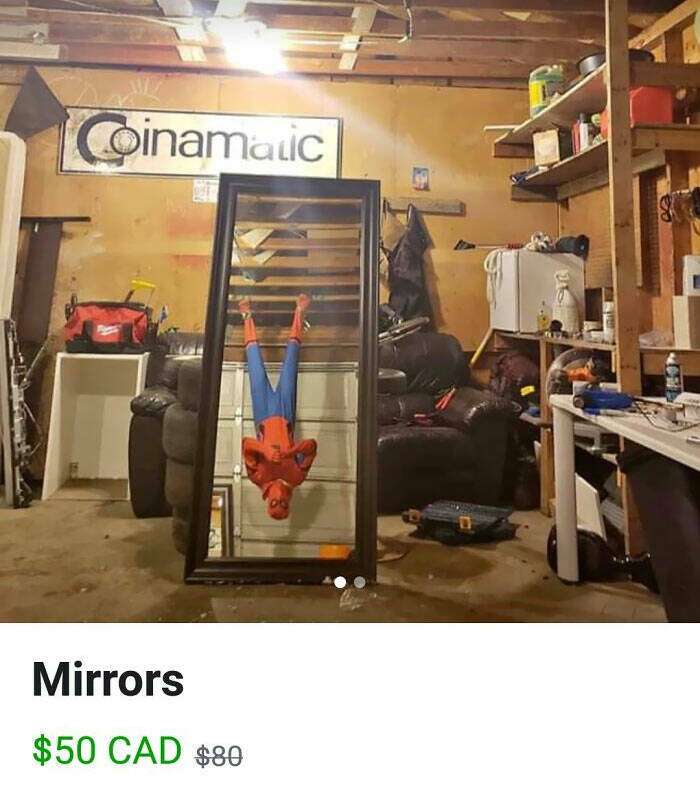 Alla kuvakooste koomisista myynti-ilmoituksista, joissa kaupiteltiin peilejä.