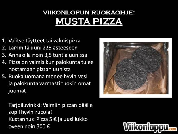 Pitkän Perjantain musta pizza, kannattaa kokeilla!
