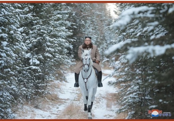 Pohjois-Korean virallinen uutiskanava (KCNA) julkaisi kuvia, joissa Kim ratsastaa Paektu-vuorella ja sen lähistöllä sijaitsevissa metsissä.