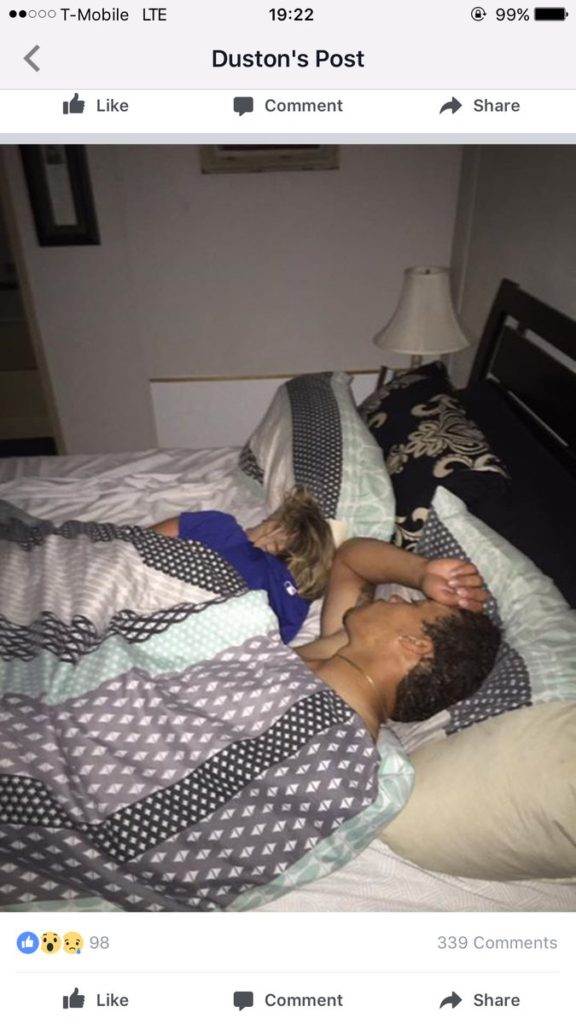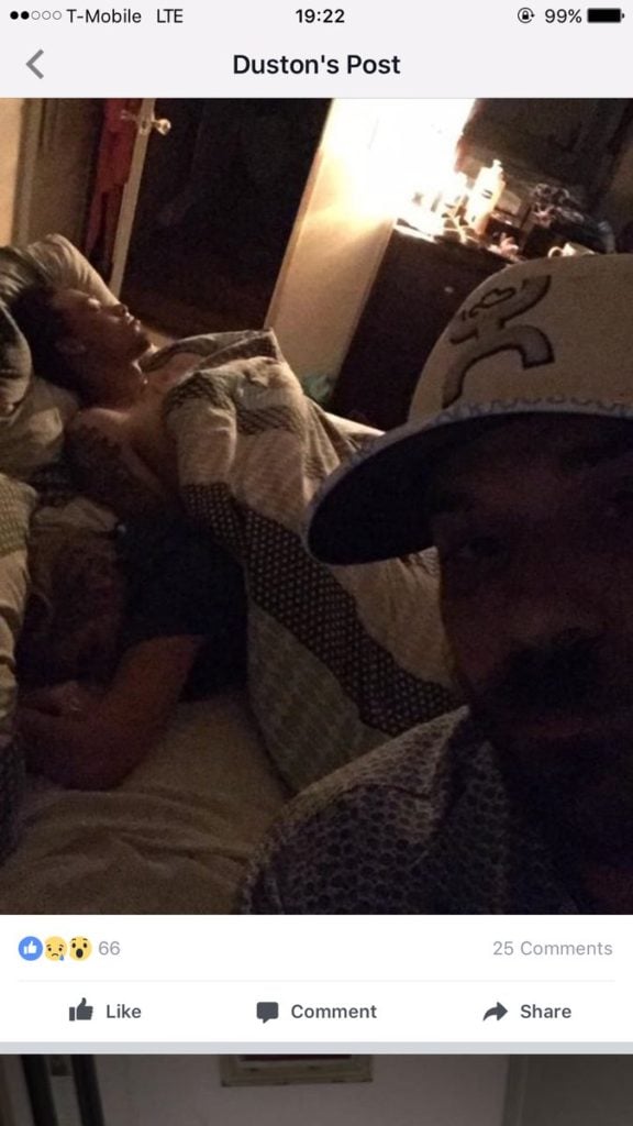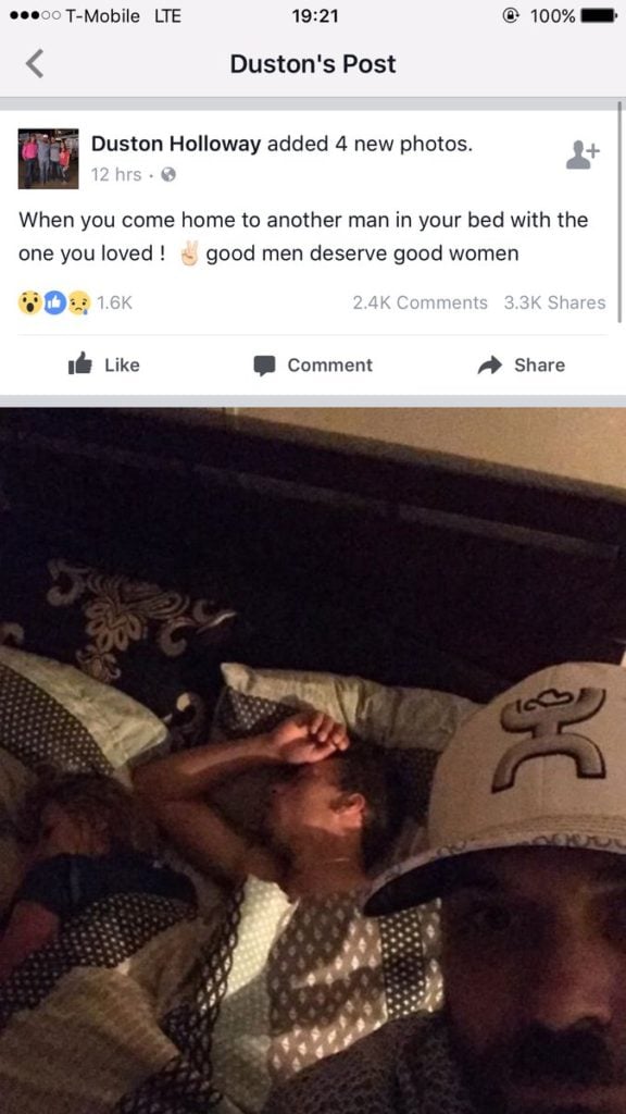 Tämä mies käyttäytyi yllättävän tyynesti, kun hän tuli kotiinsa ja huomasi tyttöystävänsä vieressä nukkuvan vieraan miehen. Duston teki tilapäivityksen Facebookiin: ”Kun tulet kotiin ja tuntematon mies nukkuu rakkaasi kanssa! Hyvä mies ansaitsee hyvän naisen. Tilapäivitys keräsi nopeasti 1,6 tuhatta reaktiota ja tuhansia jakoja & kommentteja. Ensimmäiseksi, pariskunnalla oli lukuisia yhteisiä tuttavia, jotka saivat tilapäivityksen heidän seinälleen. Petetyksi joutuminen on karmivaa, mutta mies sai ainakin jonkinlaisen koston julkisesti. Nämä kuvat eivät välttämättä helpota hänen oloaan lainkaan. Katso kuvakooste alapuolelta.1.