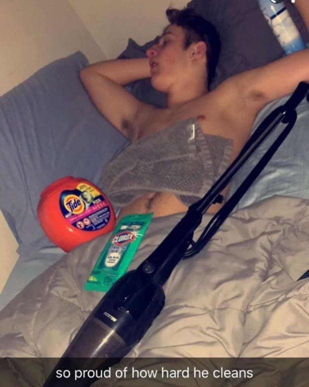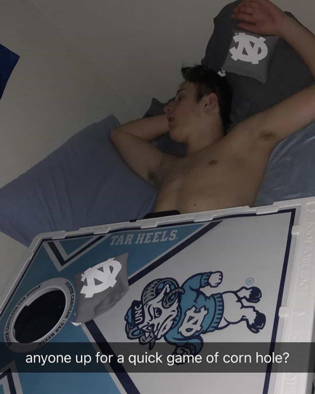 Pohjois-Karolinan yliopiston opiskelija sammui ja tyttöystävä päätti ottaa tilanteesta ilon irti – tietenkin poikaystävänsä kustannuksella. Poikaystävä oli ollut viettämässä poikien iltaa ja homma oli niin sanotusti lähtenyt lapasesta. Niinpä poikaystävä saapu lopulta kotiin ja sammui samantien sängylleen.