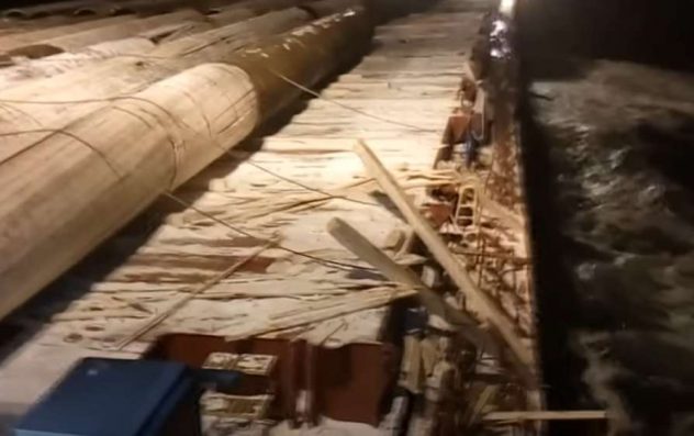Pienet vaijerit eivät riittäneet pitämään valtavaa massaa paikallaan. En haluaisi olla se tyyppi, joka on kiinnittänyt nuo putket ja joutuu soittamaan esimiehelleen.