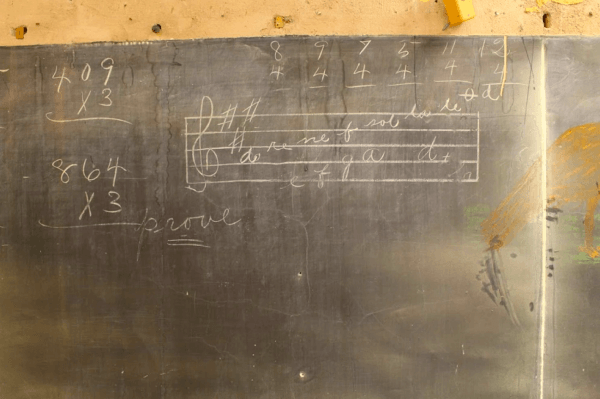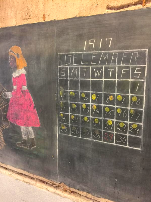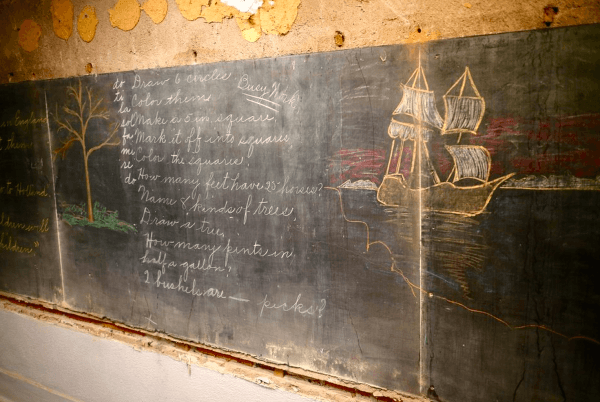 Liitutauluihin oli piirretty kyseisen ajan kertolaskukaavoja, jotka olivat käytössä vuonna 1917. Emersonin koulun opettaja totesi ettei hän oli koskaan nähnyt tällaista opetustapaa.