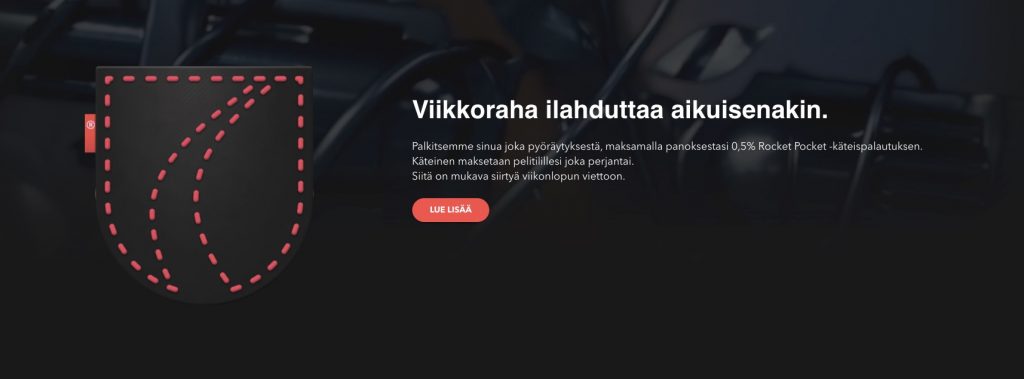 - Rocket Pocket antaa 0,5% käteispalautuksen jokaisesta panostuksesta