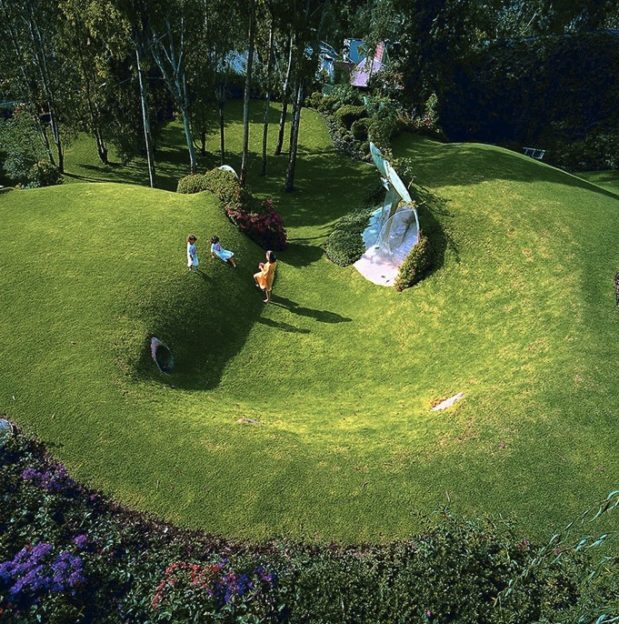 Talon päälle istutettu nurmikko tekee kodista lähes näkymättömän ja nähtävyyttä voi olla vaikea edes huomata aluksi.