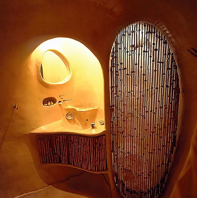”Tämä puoliksi haudattu talo oli loppupeleissä valoisampi ja kirkkaampi kuin tavalliset talot, sillä ikkunoita voi asettaa minne tahansa. Ilmanvaihto on suunniteltu niin että ilma kiertää ilman erillistä laitteistoa.”