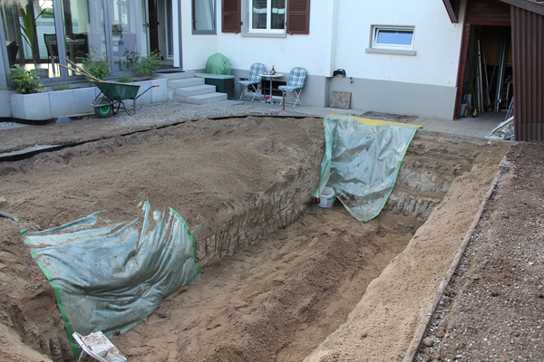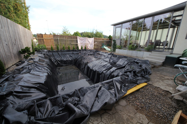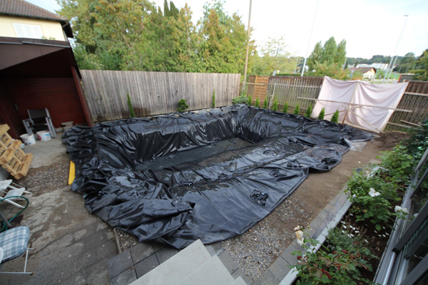 10. Altaalle tarkoitettu alue peitettiin muovilla.