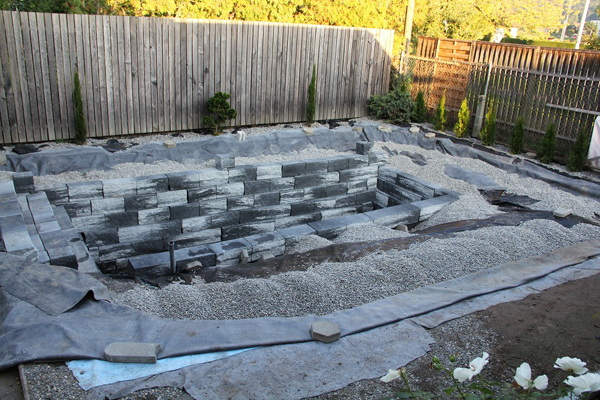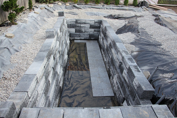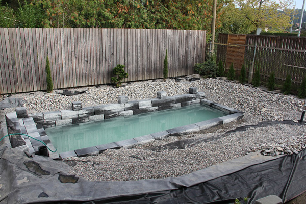 15. Seuraavaksi reunoille lisättiin kivimursketta ja allas muurattiin.