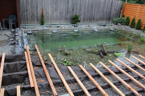22. Seuraavana vuonna altaan reunoille päätettiin istuttaa vesikasveja.