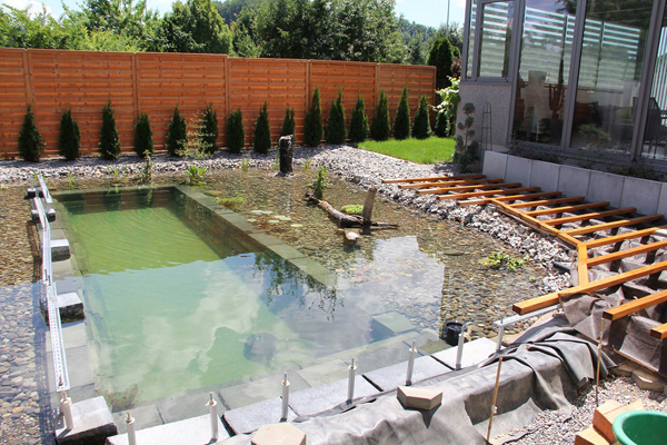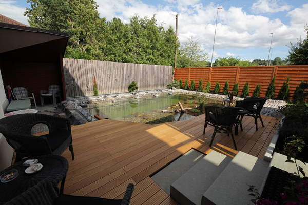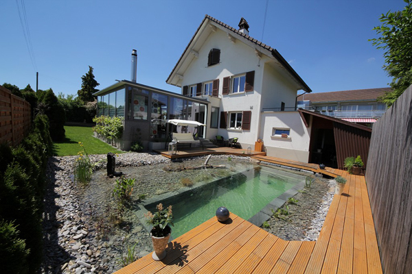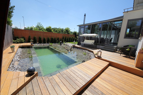 19. Lampi ja uima-allas saatiin yhdistettyä tyylikkääksi kokonaisuudeksi.