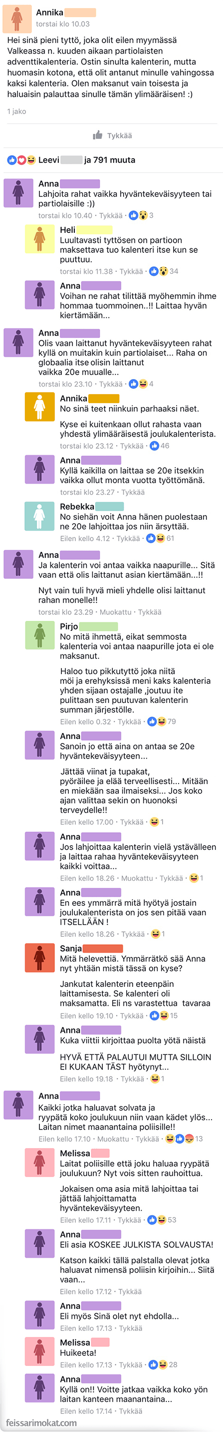 - Feissarimokat: Jokin tässä joulukalenterissa ei nyt täsmää