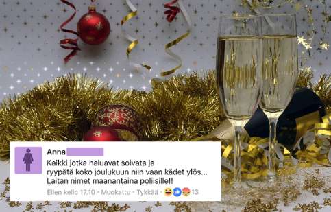 Suomalaisnainen aikoo tehdä rikosilmoituksen kaikista, jotka juovat alkoholia joulukuussa