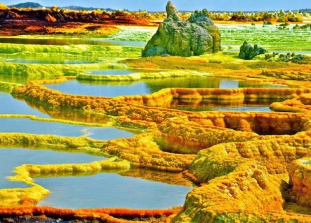 Vähäinen sade ja vulkaaninen maaperä luovat geologisesti merkittävän alueen, jossa on rikkialtaita, mustaa laavaa ja värikkäitä mineraaleja sisältäviä altaita.