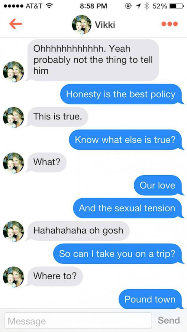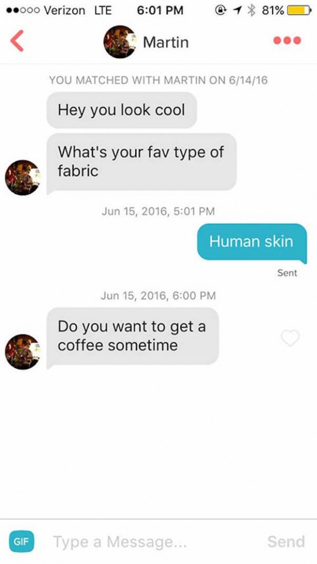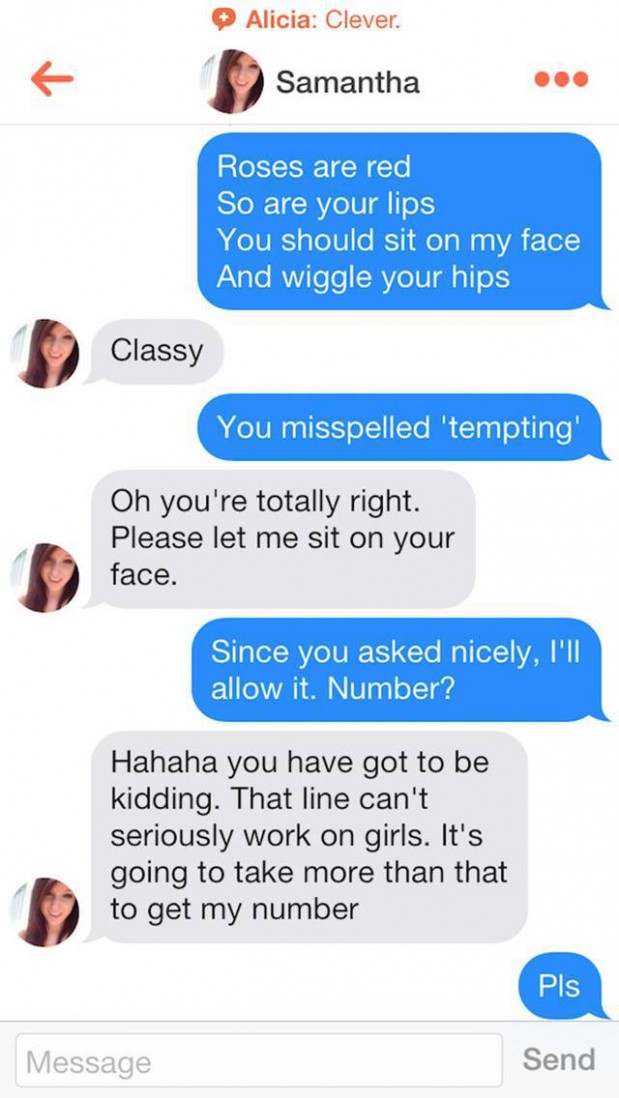 Tinderissä ollessa ei ole semmoista iskulausetta, johon et törmäisi jossain vaiheessa.