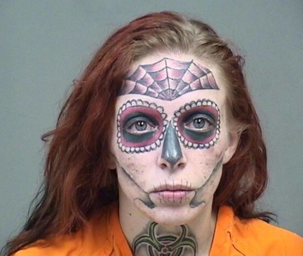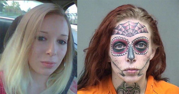Naisen ainutlaatuinen pidätyskuva herätti huomiota netissä. Alyssalla oli tatuoinut kasvonsa hämähäkinseittiä ja muertos-pääkallon. 27-vuotiaan viimeisen Facebook-kuva oli vuodelta 2012, jolloin hänellä oli vaaleat hiukset ja ei juurikaan tatuointeja.#1