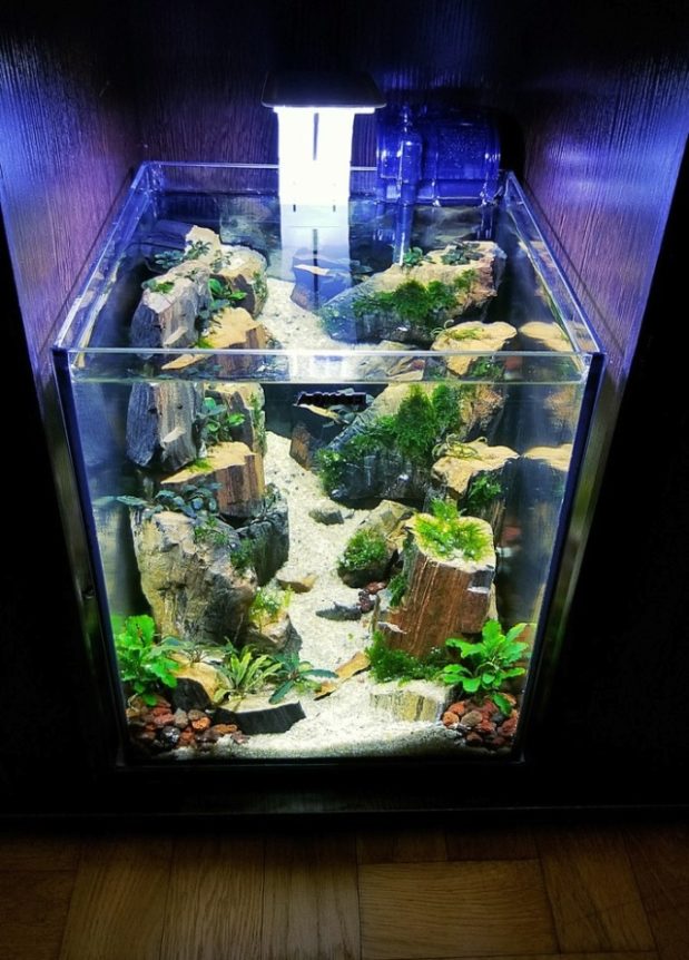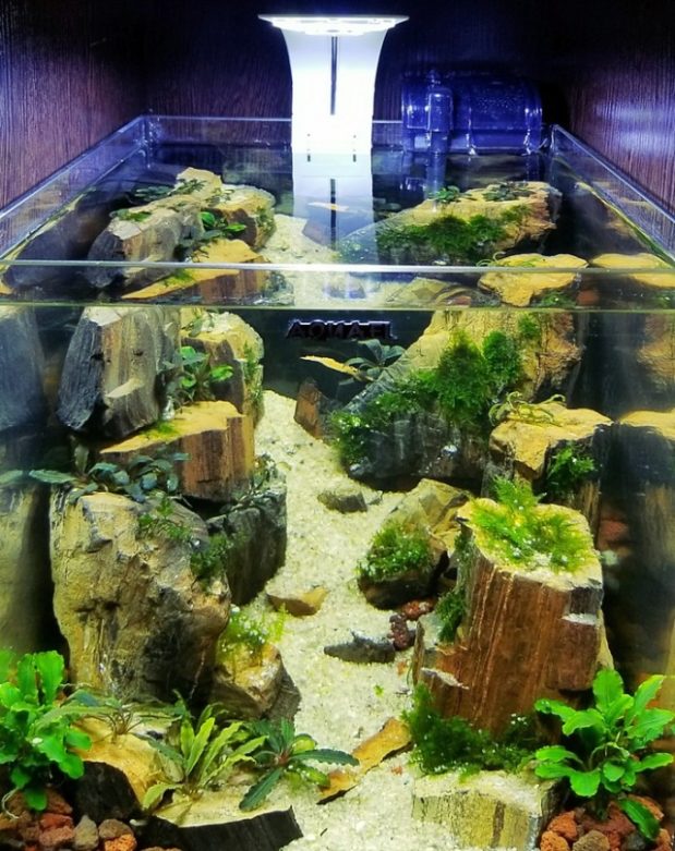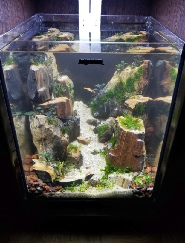 Menetelmää, jossa akvaario muutetaan maisemaksi tunnetaan nimellä ”aquascaping” ja voit katsoa kyseisellä hakusanalla upeita videoita YouTubesta.