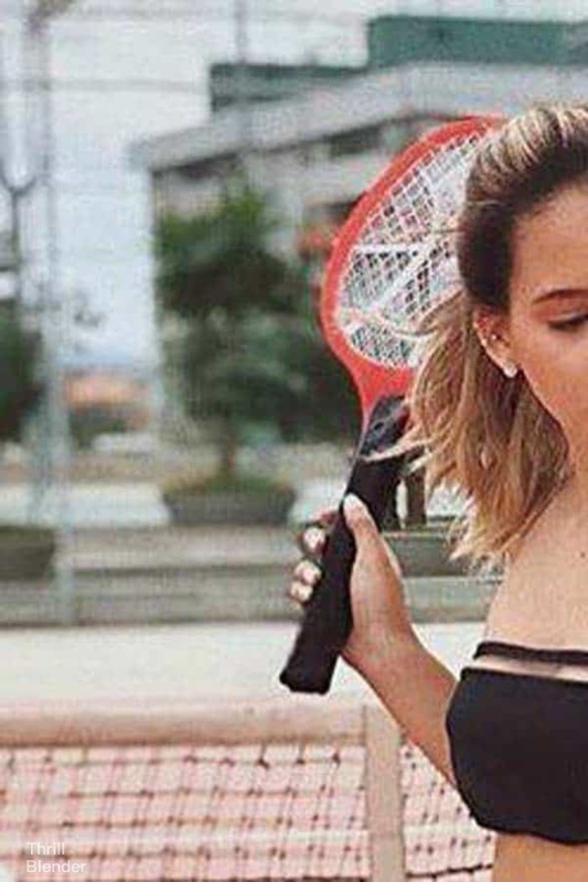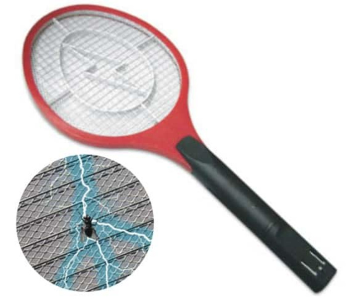 Jos olit tarkkana niin huomasit ettei nainen pitele kädessään tennismailaa. Todellisuudessa hänellä oli kädessään sähkökärpäslätkä, joka tosin kaukaa katsottuna muistuttaa erittäin paljon tennismailaa.