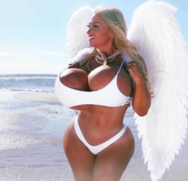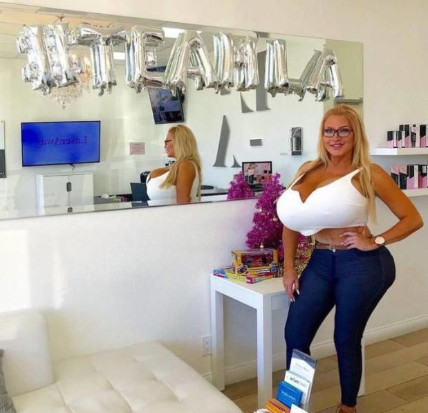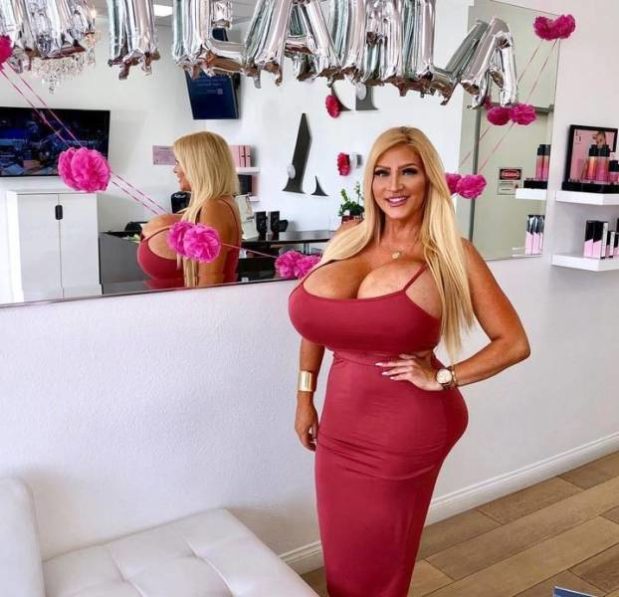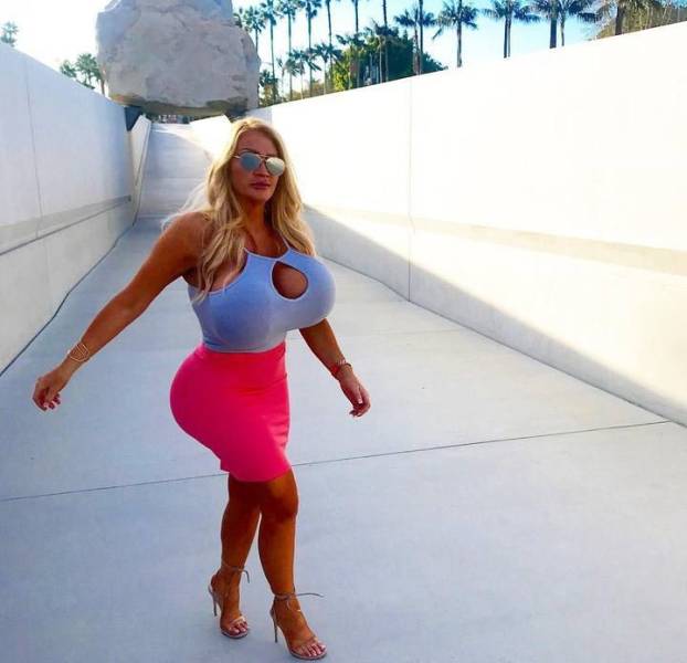 Näin valtavat rinnat kääntävät varmasti katseita kaduilla – sekä hyvässä ja pahassa. Allegra Cole, 48, on kasvattanut rintojaan plastiikkakirurgin veitsen alla suorastaan epäluonnollisiin mittoihin. Hänen rintakehänsä ympärysmitta on tällä hetkellä 137 senttimetriä ja kumpikin rinta painaa noin 5 kiloa. Hän yritti menestyä aikuisviihdealalla, muttei onnistunut joten nyt Allegra tekee rahaa olemalla suosittu sosiaalisessa mediassa. Allegra ei luultavasti tiedä, mitä sana ’kohtuullisuus’ tarkoittaa mutta pääasia on että hän on tyytyväinen itseensä.