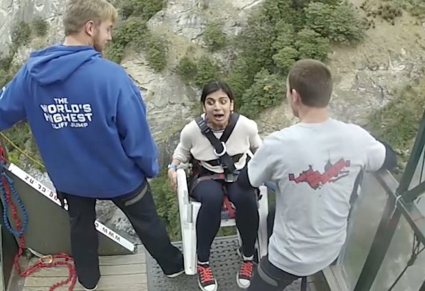 Voit katsoa oheiselta videolta, kun nuori nainen kokeilee pudotusta ja katuu päätöstään juuri ennen h-hetkeä.
