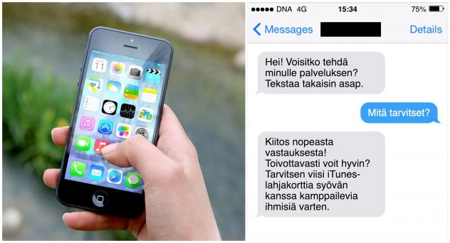 Hän ”suostui” antamaan huijarille viisi iTunes -lahjakorttia, joihin oltiin ladattu 100 euroa. Tämän jälkeen huijari pyysi miestä raaputtamaan koodit, joiden avulla hän saisi lunastettua rahat itselleen.