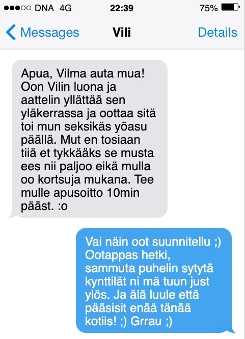 Suomalaisnaisen tarina alkoi nololla tavalla, mutta lopulta kaikki päättyi onnellisesti. Voin kuitenkin kuvitella, että tapahtumahetkellä tilanne on tuntunut äärimmäisen kiusalliselta. Vili ei kuitenkaan selvästi pannut pahitteeksi, että hän sai Vilmalle tarkoitetun viestin.