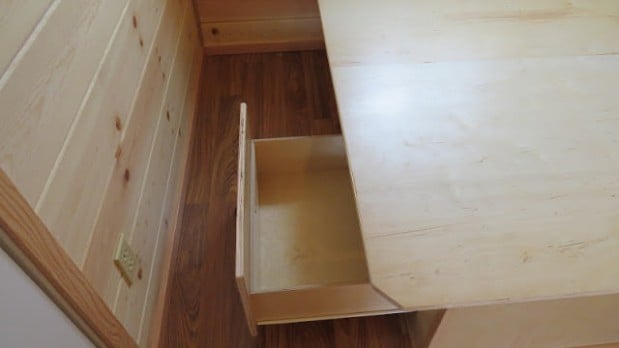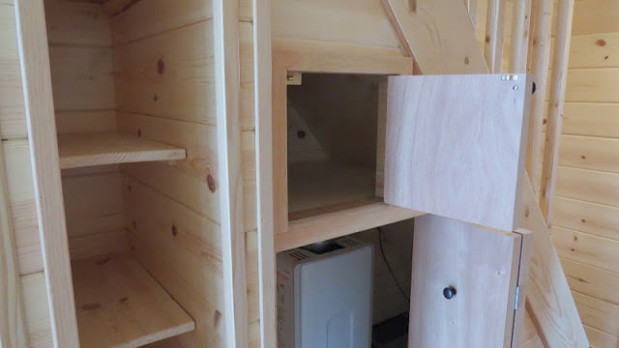 Mökissä on vähän neliöitä, mutta tavaran säilytyspaikkoja löytyy yllättävistäkin paikoista.