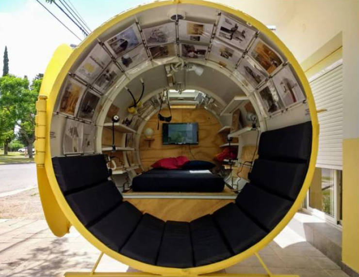Täytyy sanoa että tämä on yksi erikoisimmista asumisjärjestelyistä, joita olen koskaan nähnyt. Diesel-säiliössä on valaistus, hyllyköitä ja sänky. Argentiinalainen taiteilija, Martín Marro, sai inpiraationsa kodista, jossa hän kasvoi pienenä.