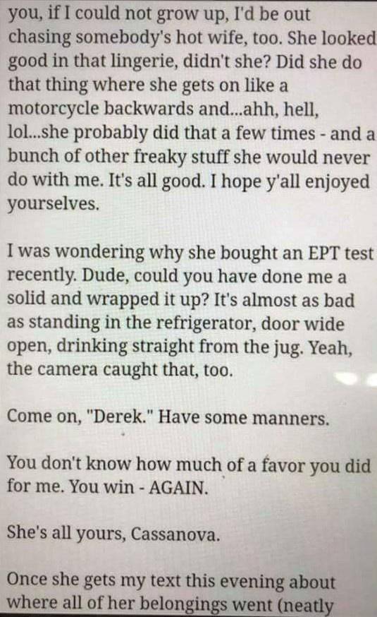 ”Tummalle miehelle, joka on harrastanut seksiä vaimoni kanssa. En ole täällä nolatakseni sinua julkisesti, sen sijaan yritän tavoittaa sinut”