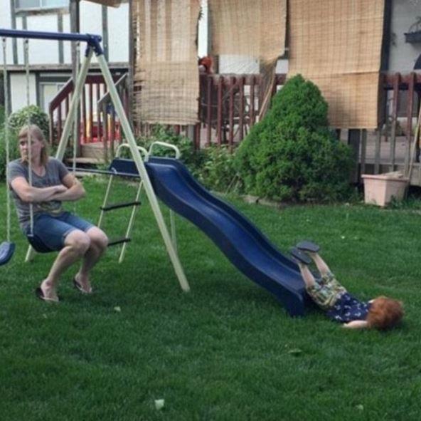 Niin kuin jokainen vanhempi tietää, omien lasten vahtiminen 100% ajasta on täysin mahdotonta. Mutta silti kukin vanhempi tekee parhaansa, jotta oma jälkikasvu olisi mahdollisimman hyvissä käsissä. Samaa ei voi sanoa kuitenkaan näistä vanhemmista, jotka tuntuvat suhtautuvan todella välinpitämättömästi lastensa kasvatukseen. Voi itse asiassa olla että näiden kuvien jälkeen tunnet itsesi erinomaiseksi huoltajaksi! Osa vanhemmista ei yksinkertaisesti osaa pitää huolta lapsistaan tai viihdyttää heitä oikeilla menetelmillä. Netissä liikkuu tällä hetkellä myös SnapChat -videoita, joissa vanhemmat säikyttelevät lapsiaan erilaisilla filttereillä – ”huvittavat” videoit voivat todellisuudessa aiheuttaa lapsille traumoja. Tässä on muutamia kuvia, joista selviää miksi näiden vanhempien tulisi opetella pitämään huolta lapsistaan.Hevoseksi pukeutunut isä ja pieni lapsi