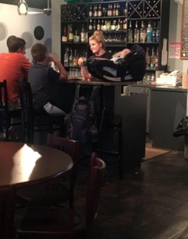 Mitä teet, kun haluat mennä baariin mutta sinun tulee huolehtia lapsesta? No et ainakaan ota lasta mukaan baariin.