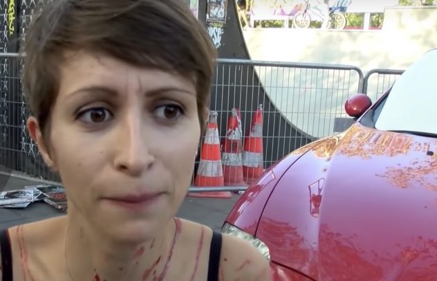 Sadat 269 Life France -yhdistyksen aktivistit kokoontuivat vilkkaalle kadulle ja yrittivät saada ohikulkijoita pysähtymään pisteensä luokse. Vegaanit olivat mielenkiinnon lisäämiseksi päättäneet tehdä toisilleen polttomerkintöjä, joiden tarkoitus oli ilmeisesti osoittaa kuinka kaltoin eläimiä kohdellaan.
