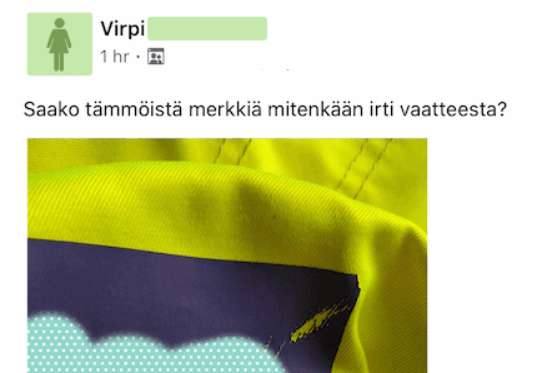 Virpi pyysi apua merkin irrottamiseen vaatteesta, mutta saikin vastauksen josta hän pahoitti mielensä.