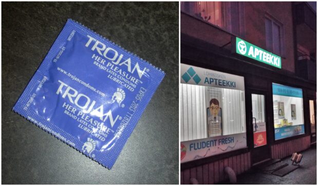 ”Siistiä”, poika sanoo ja huomaa samalla kuuden kondomin pakkauksen.