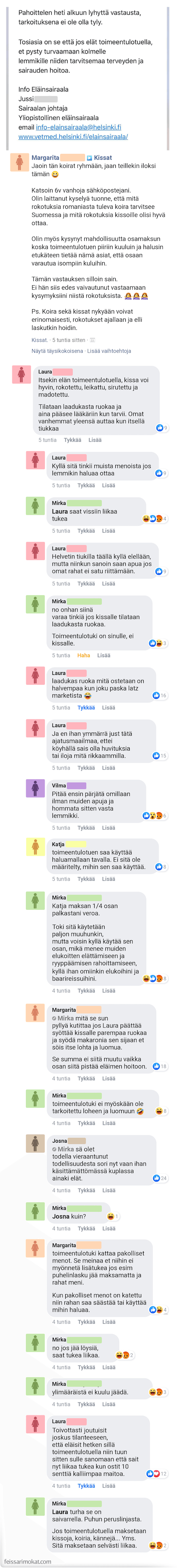 Toisten mielestä toimeentulotuella ei kuitenkaan saisi ostaa esimerkiksi kissanruokaa. Tämä on sinänsä ihmeellistä, sillä toimeentulotuen summa on edelleen sama, vaikka sillä ruokkisi 100 kissaa.