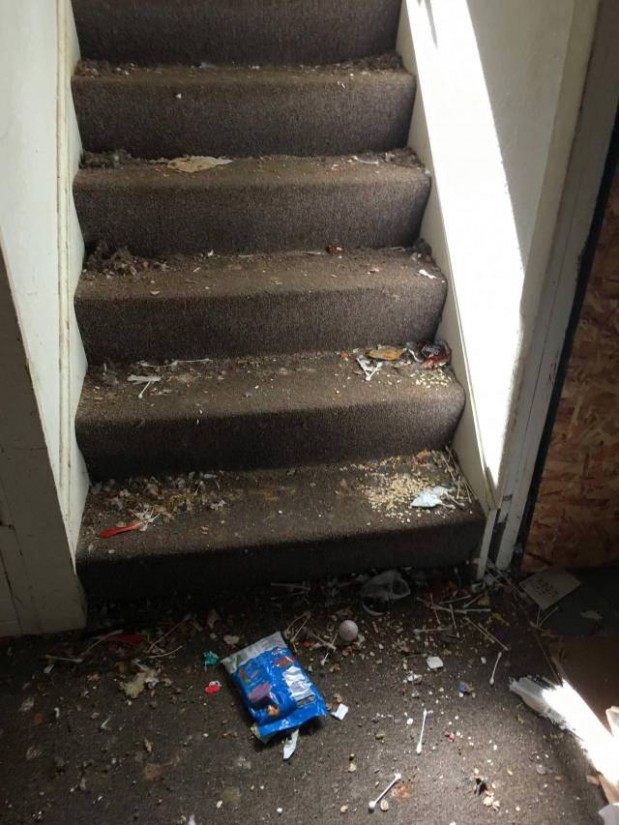 Nämä kuvat saivat minut raivostumaan… En ymmärrä, kuinka joku kehtaa tehdä tällaista jälkeä toisen omaisuudelle. On vain valitettava fakta, että tietyt ihmiset eivät piittaa lainkaan muista ihmisistä tai heidän omaisuudestaan. Pennsylvaniasta kotoisin oleva vuokranantaja latasi sosiaaliseen mediaan kuvia talostaan. Hän oli vuokrannut talonsa perheelle, jolla oli kaksi lasta ja muutama koira. Kuvat otettiin, kun kaksi suurta jätesäkillistä roskia oltiin jo siirretty ulos talosta. Vuokranantajan mukaan talon sisällä oli niin paljon roskaa, että käveleminen oli vaikeaa. Talo on kirjaimellisesti pilalla, enkä tiedä voiko tällaista sotkua enää siivota. Toivottavasti perhe laitetaan vastuuseen ja vuokranantaja saa korvauksensa, joita hän tulee tarvitsemaan ja kipeästi.1.