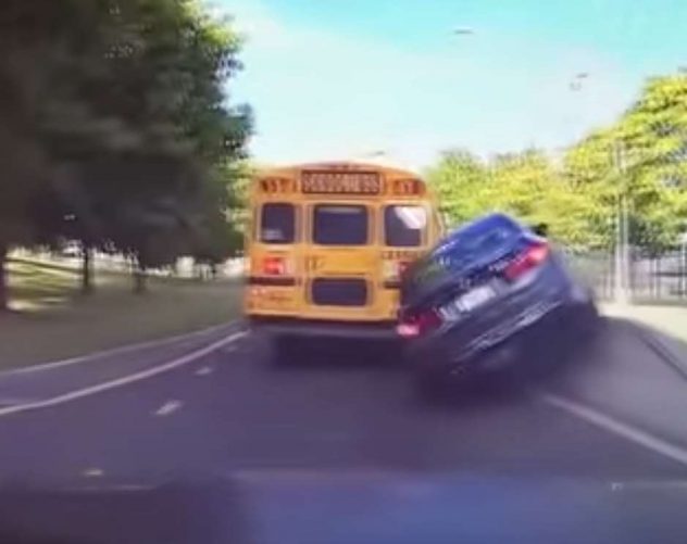 Tällä videolla esiintyvällä bemarikuskilla oli todella kiire johonkin. Bemarikuski yritti nimittäin kiilata koulubussin eteen huonoin seurauksin. Lopputuloksena kuski hävisi mukavan summan rahaa, eikä ainakaan päässyt ajoissa perille.LUE MYÖS: